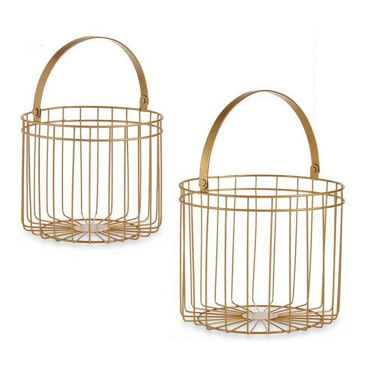 Conjunto de Cestas Gift Decor Dourado Metal Cilíndrica 2 Peças