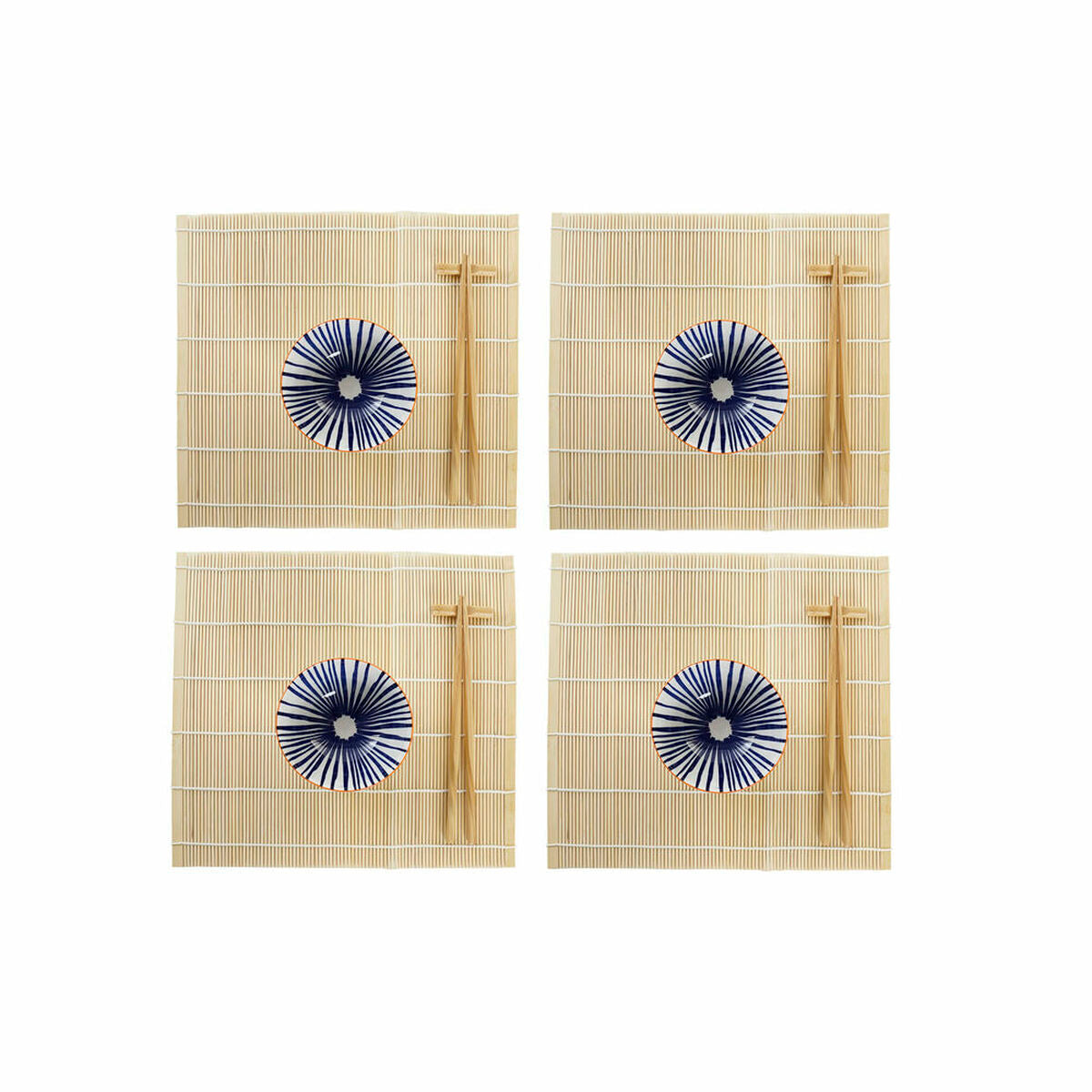 Conjunto de sushi DKD Home Decor 14,5 x 14,5 x 31 cm Azul Branco Grés Oriental (16 Peças)